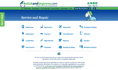 No matter what home service is needed, Click and Improve can take care of it for you, hassle-free and guaranteed. Our cleaners have a proven, spotless track record in quality service and have been in business for over ten years, signifying a positive work ethic and good, attentive relationship with customers. You can schedule a single cleaning or ongoing cleanings, available in daily, weekly, bi-weekly, and monthly intervals. And with our extensive catalog of home improvement services and repairs, we can handle any other work that might come up when the dust has cleared.