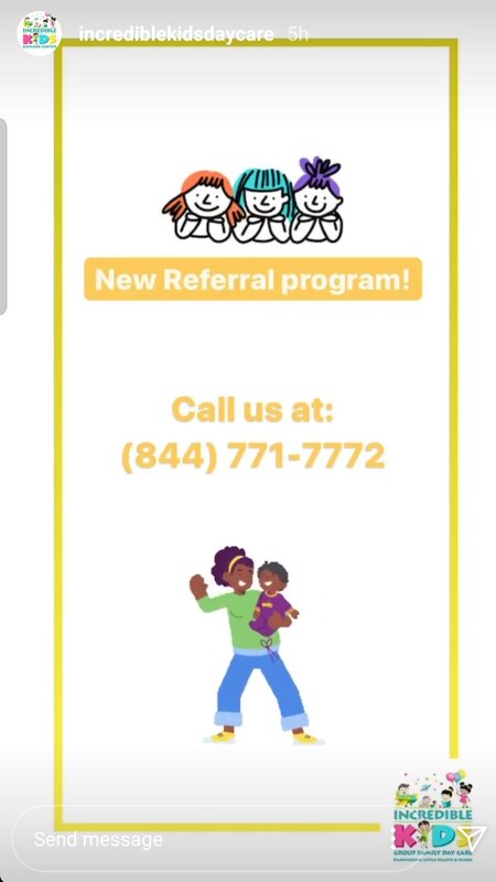 FAMILY & FRIENDS refer a parent to Incredible Kids Group Family Day Care LLC, and receive a referral bonus