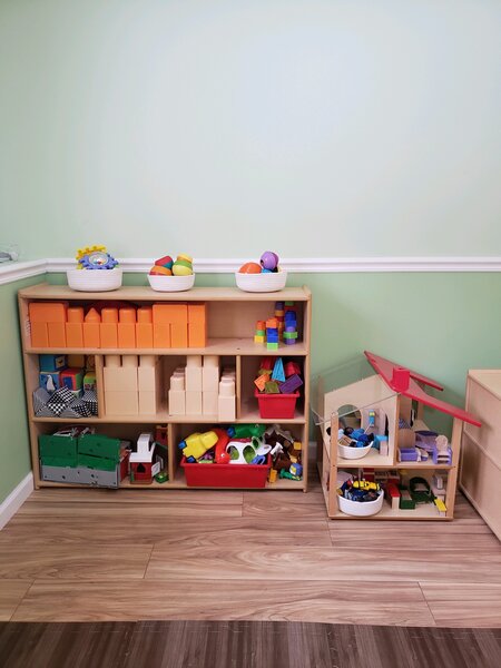 Half our home is dedicated to child care. Our space is designed specifically for infants and toddlers. Our environment is inspired by nature and filled with wonder! Our main space is divided into interest/developmental areas. We have a creative curriculum in place. Our curriculum is designed to cover each area of development each week. We observe and assess each child and individually meet their needs. We use infant sign language daily.