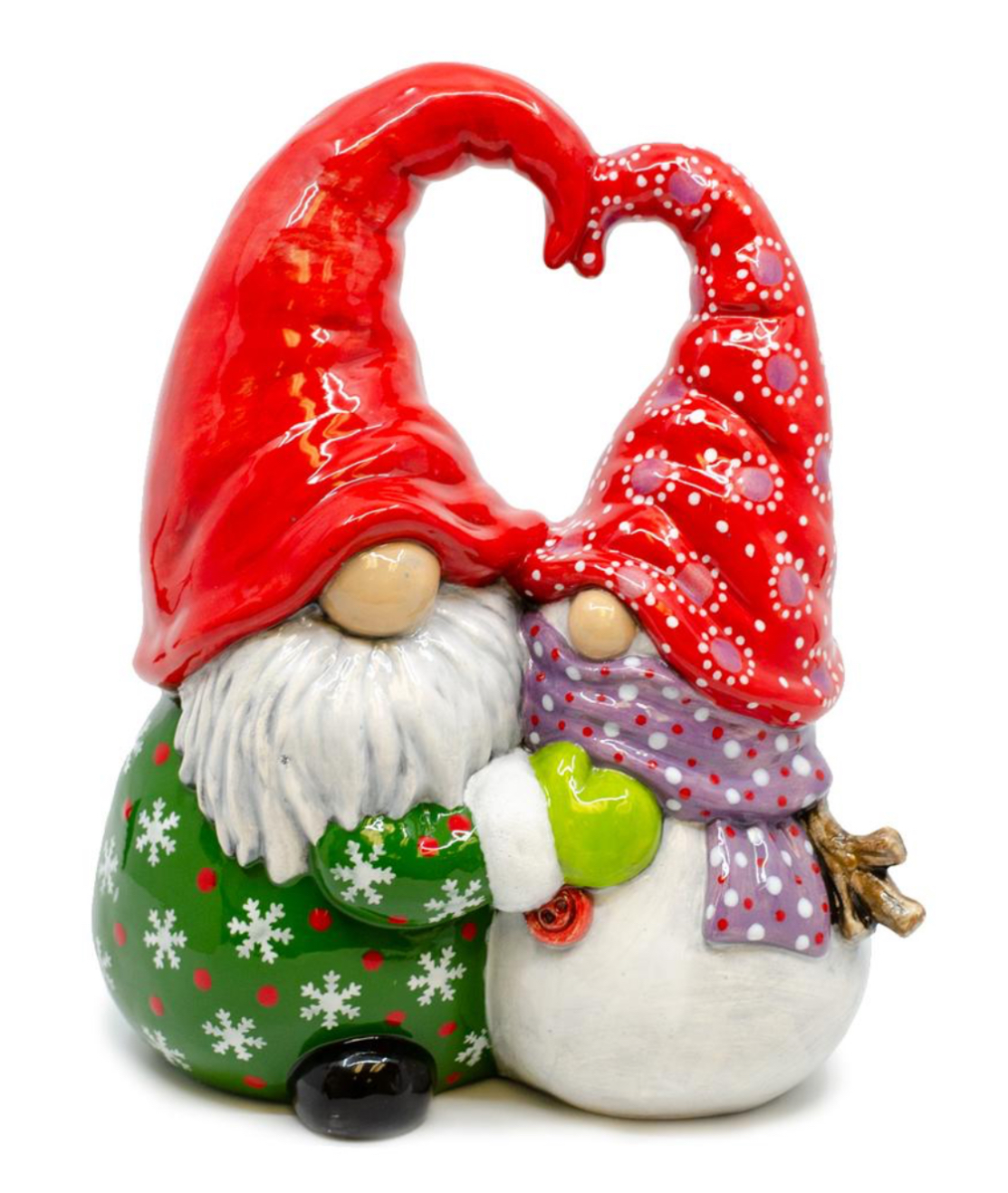 Get ready for the holiday with this charming ceramic of a gnome giving his snowman friend a hug!!