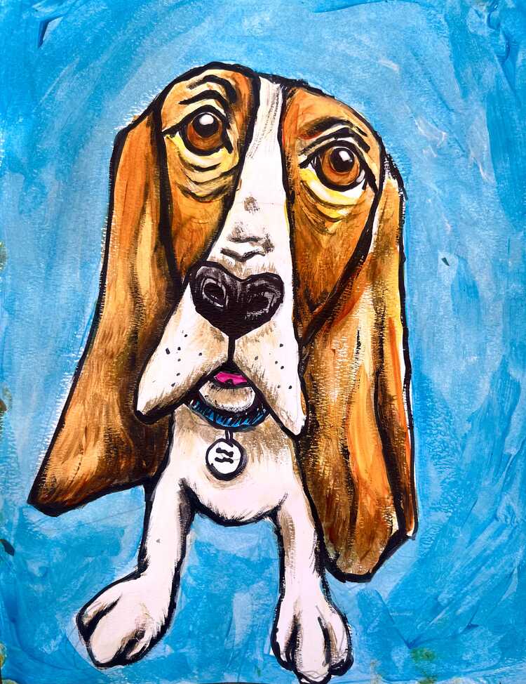 In this class students will combine their drawing and painting skills to create an adorable basset hound. With step by step guidance, we will first focus on line and form to sketch out our furry friend. Then, students will learn techniques for texture and color blocking to really make him come to life. This project is sure to be a fun filled class with a paw-some painting to take home.
