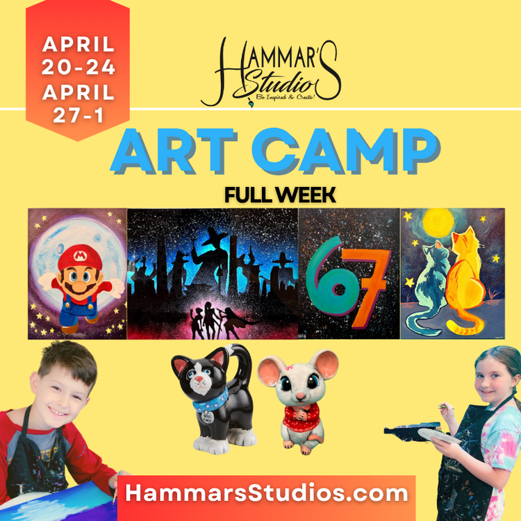 🎨 Spring Break Art Camp at Hammar’s Studios! 🌸 Make this Spring Break creative, fun, and unforgettable! Join us for a week of hands-on art projects where young artists will explore painting, design, and ceramics in a supportive studio environment. 🗓 LOGISTICS (MA): April 20 – April 24 (NH): April 27 – May 1 ⏰ Time: Monday – Friday | 9:00 AM – 12:00 PM 💲 Only $49.99 per day – choose your days or join us all week! ✨ AGENDA 🎮 Monday: 11x14 Galaxy Painting – choose Mario or Princess Rosalina 🎤 Tuesday: 16x20 K-Pop Demon Hunters Silhouette 🎨 Wednesday: 6–7 Themed Painting (11x14) 🌙 Thursday: 16x20 “Stargazing Kitties” Canvas 🐱 Friday: Cat or Mouse Ceramic (Same-Day Take Home!) Each day brings a brand new project and new techniques—perfect for creative kids who love to explore and make something amazing. 🎟 Spots are limited—reserve your days today! If you have any issues signing up or wish to sign up for multiple days please do not hesitate to call us at 603-751-8008! #HammarsStudios #ArtCamp #SpringBreakCamp #CreativeKids #KidsArt