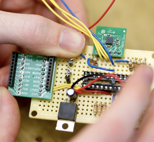 In this hands-on engineering camp, students learn how to build their own interactive electronic devices. Using user-friendly microcontrollers, campers will build circuits, then code them to create systems that light up, buzz, react to motion & sound, and more. Students begin with the basics—how electricity flows, how devices collect data, and how coding controls hardware—then apply those skills to build smart alarms, reaction-time games, simple monitors, and interactive devices. (No coding experience required.) By the end of the week, each camper will have developed a working knowledge of physical computing, controls, sensors and more. This camp is ideal for students new to electronics as well as those ready to level up their engineering skills. Recommended for ages 11-15.