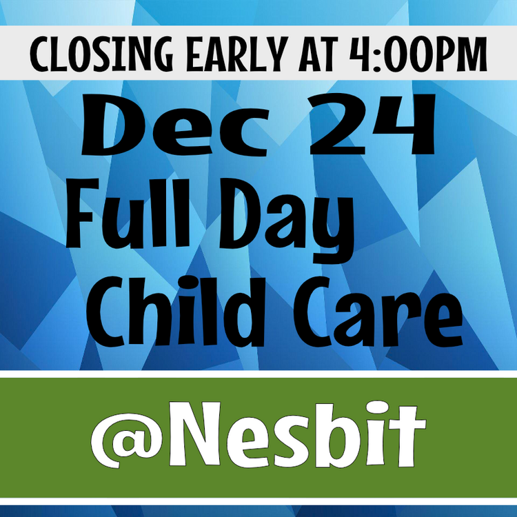 December 24 Full Day Care (Nesbit) - Closing Early at 4:00PM
