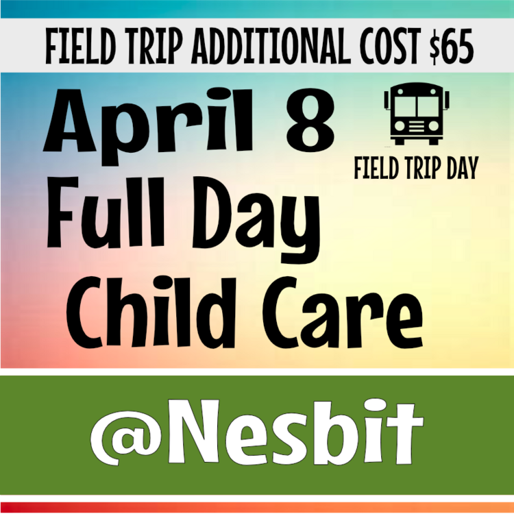 April 8 Full Day Care (Nesbit) Field Trip TBD